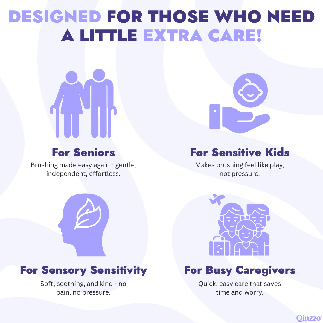 That’s exactly who it’s made for. The hands-free design does all the work for you, making brushing effortless even if holding or moving a regular toothbrush is difficult.